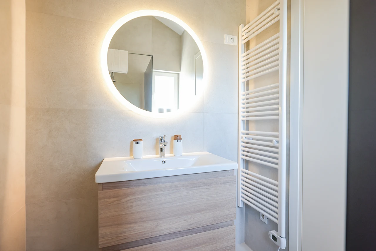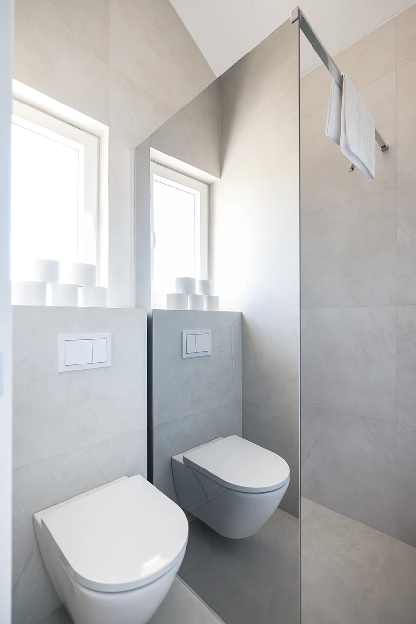 • Two bathrooms, one with a practical washing machine and a separate toilet
